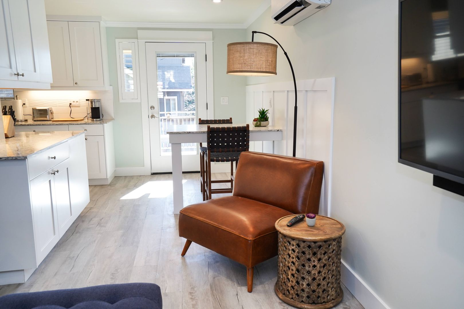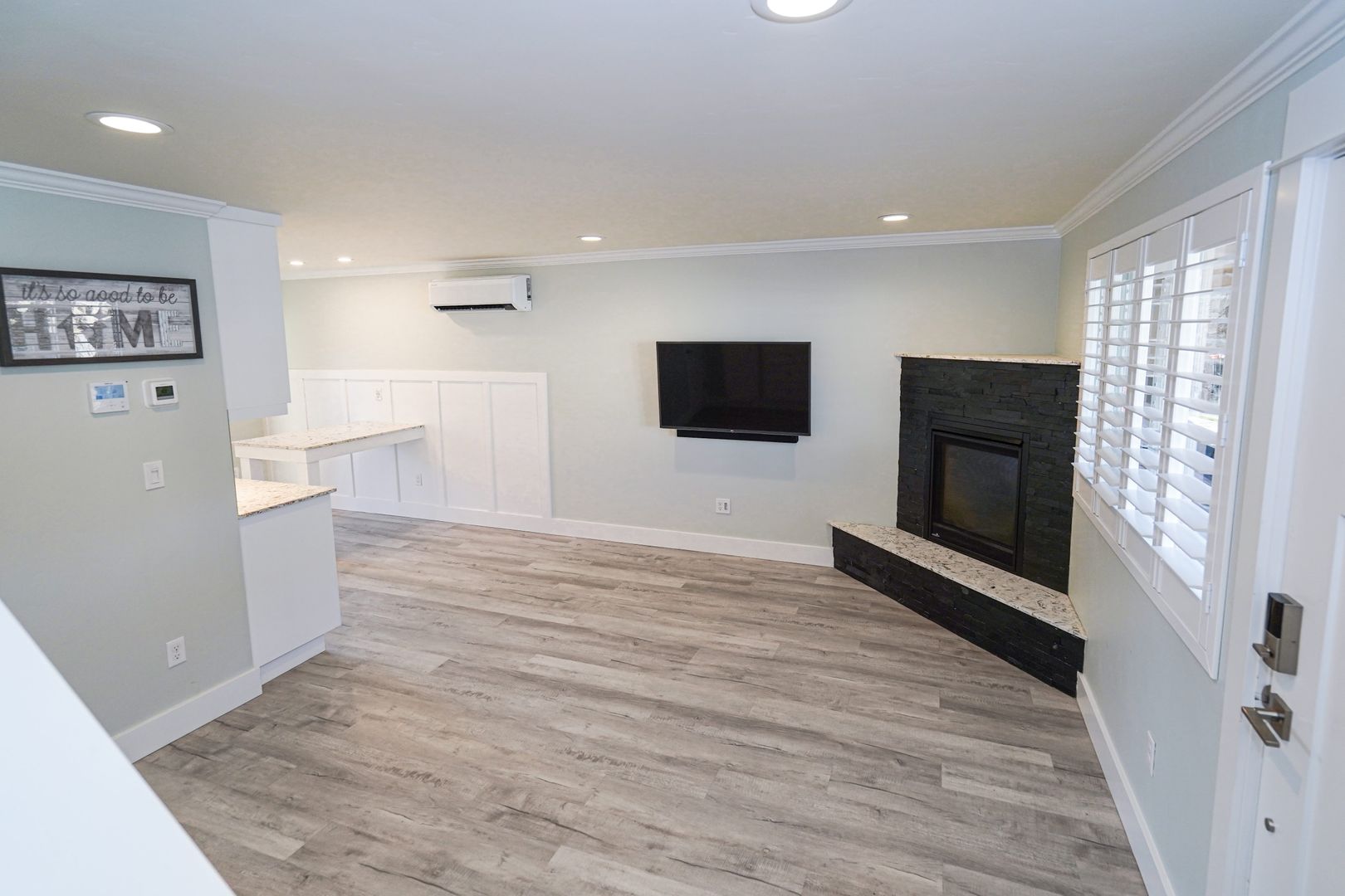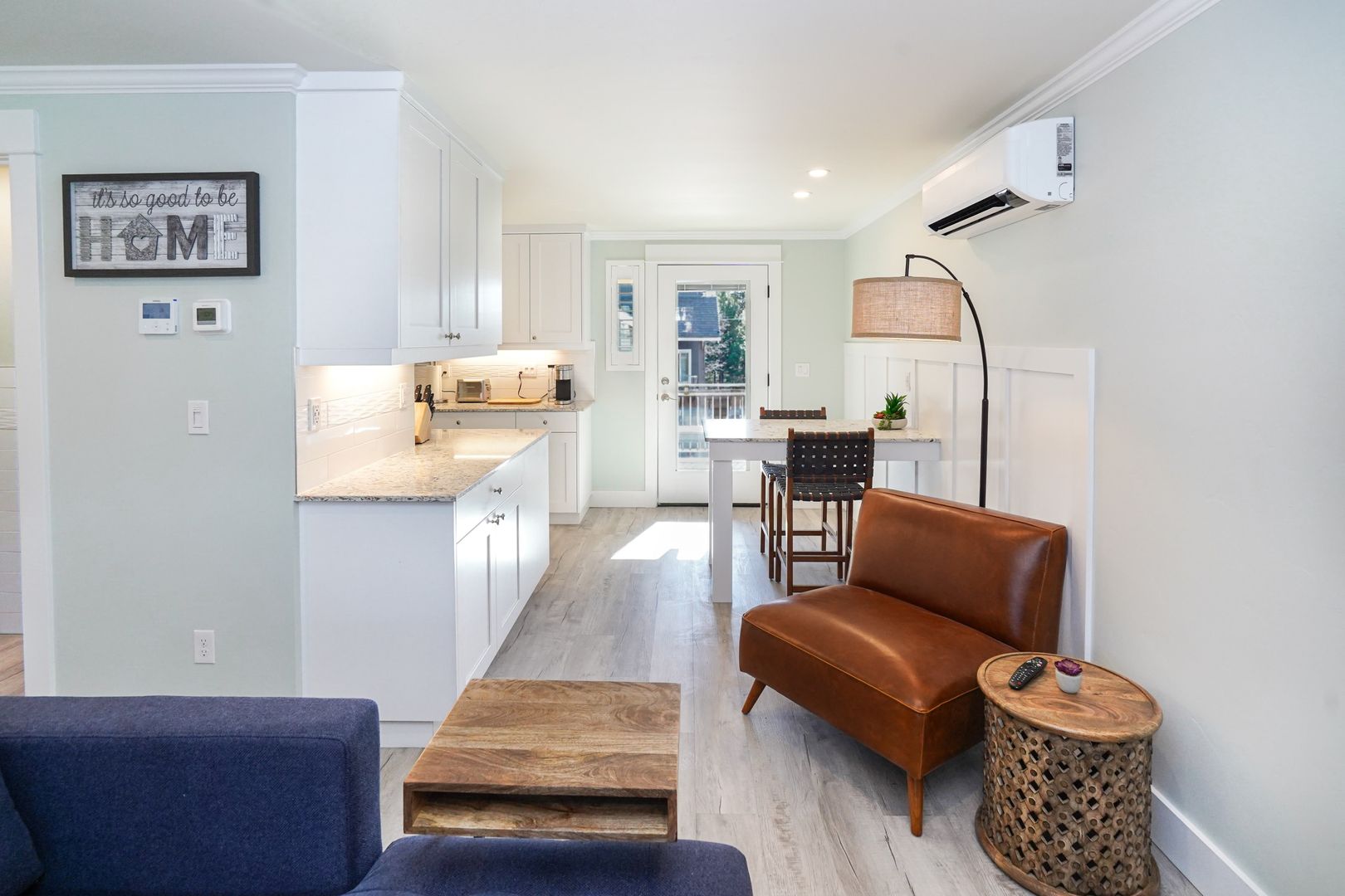 Interiors include all gas appliances, a stacked washer/dryer, gas fireplace in the living room, built in dining area table, extensive countertop surface area in a fully appointed kitchen with new appliances. There is durable synthetic hardwood flooring throughout the entire unit and a mini-split air conditioning system for year round comfort. LED lighting throughout for efficiency. The bedrooms have built in dresser drawers in the closets and many additional cabinets built into the bedrooms, bathroom and living room. The photos are of Unit #6(previously a model unit), but all units have the same floor plan and finishes at completion of the renovation program, but are unfurnished. This fully appointed townhouse is offered at a WINTER SPECIAL rental rate of $2,595 ($2795/Mo with $200 monthly credit during term/or one month free rent on approved credit),with a 13 month lease, plus a fixed $75/month charge as a utility reimbursement for water, sewer, trash and snow removal. The security deposit is the same as the rent and there is a $30 per person application fee which includes a criminal background check. Pets are allowed, with breed restrictions, at an additional cost of $75/month and a $500 additional pet deposit. There is a pet relief area on site as well for convenience.