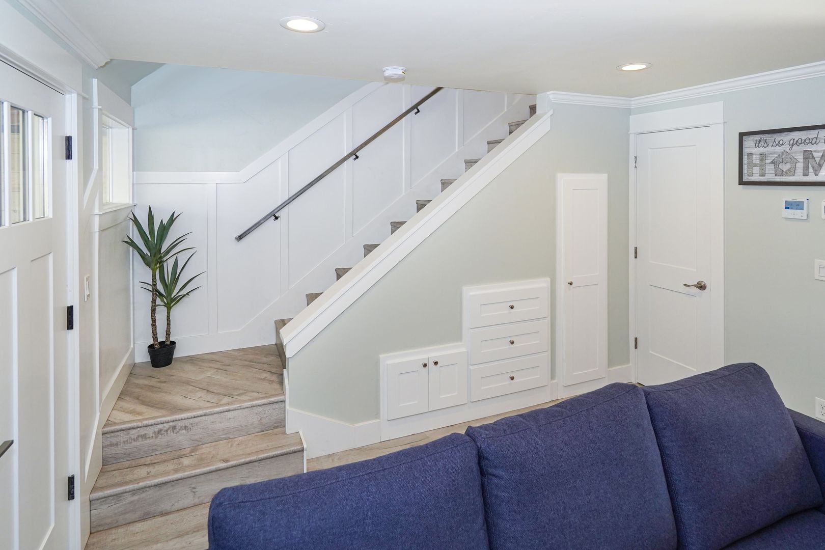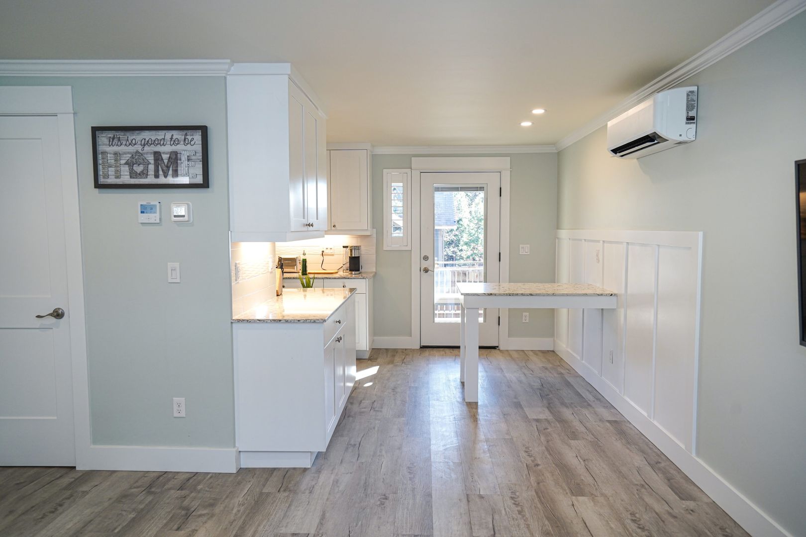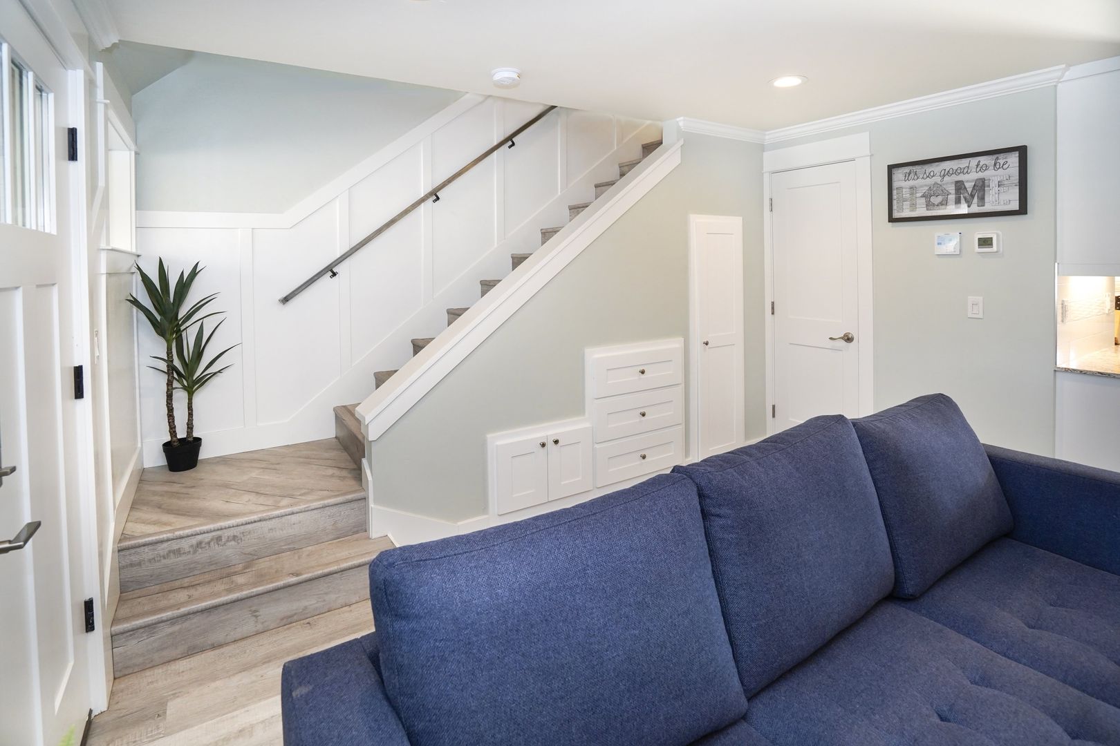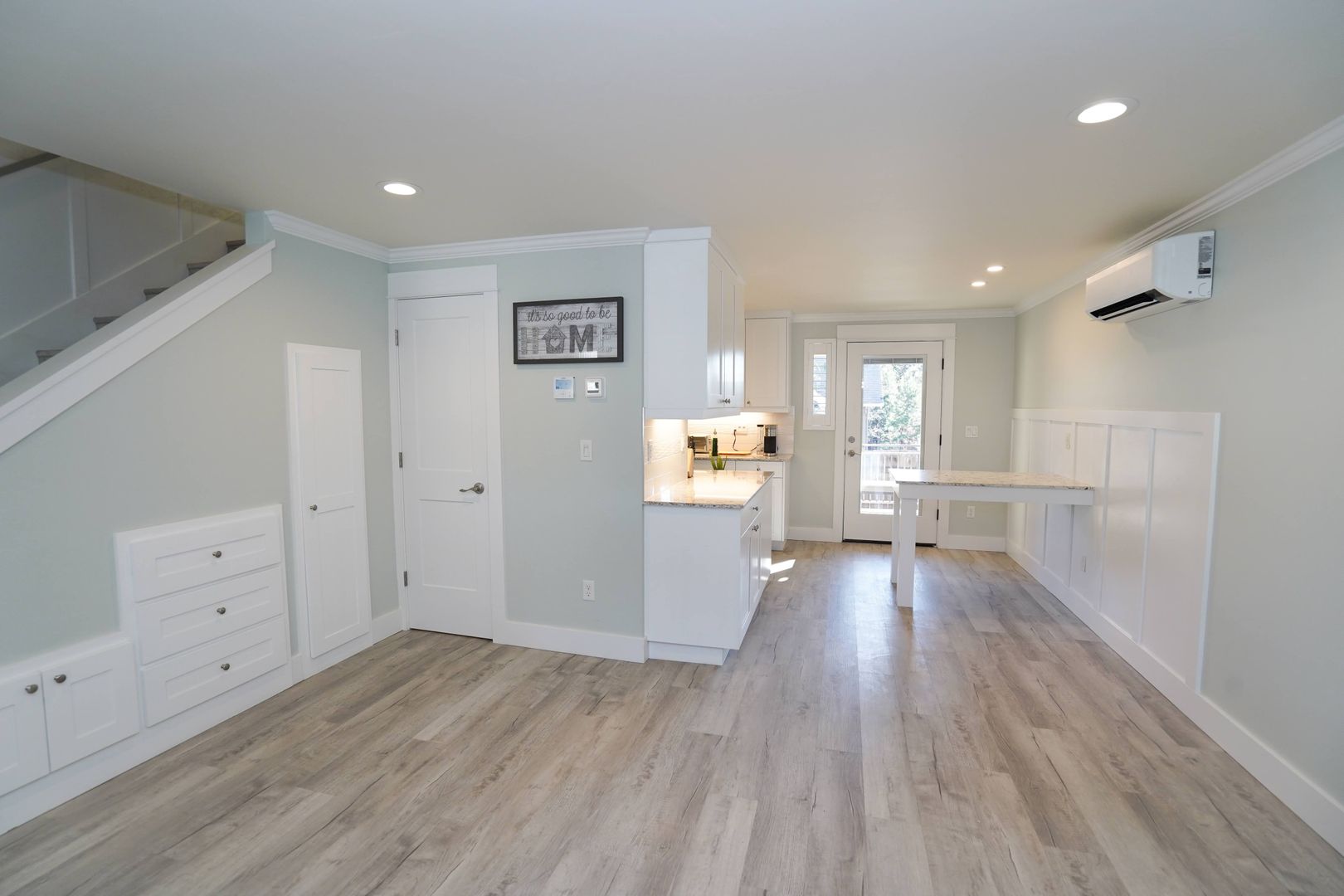 Interiors include all gas appliances, a stacked washer/dryer, gas fireplace in the living room, built in dining area table, extensive countertop surface area in a fully appointed kitchen with new appliances. There is durable synthetic hardwood flooring throughout the entire unit and a mini-split air conditioning system for year round comfort. LED lighting throughout for efficiency. The bedrooms have built in dresser drawers in the closets and many additional cabinets built into the bedrooms, bathroom and living room. The photos are of Unit #6(previously a model unit), but all units have the same floor plan and finishes at completion of the renovation program, but are unfurnished. This fully appointed townhouse is offered at a WINTER SPECIAL rental rate of $2,595 ($2795/Mo with $200 monthly credit during term/or one month free rent on approved credit),with a 13 month lease, plus a fixed $75/month charge as a utility reimbursement for water, sewer, trash and snow removal. The security deposit is the same as the rent and there is a $30 per person application fee which includes a criminal background check. Pets are allowed, with breed restrictions, at an additional cost of $75/month and a $500 additional pet deposit. There is a pet relief area on site as well for convenience.