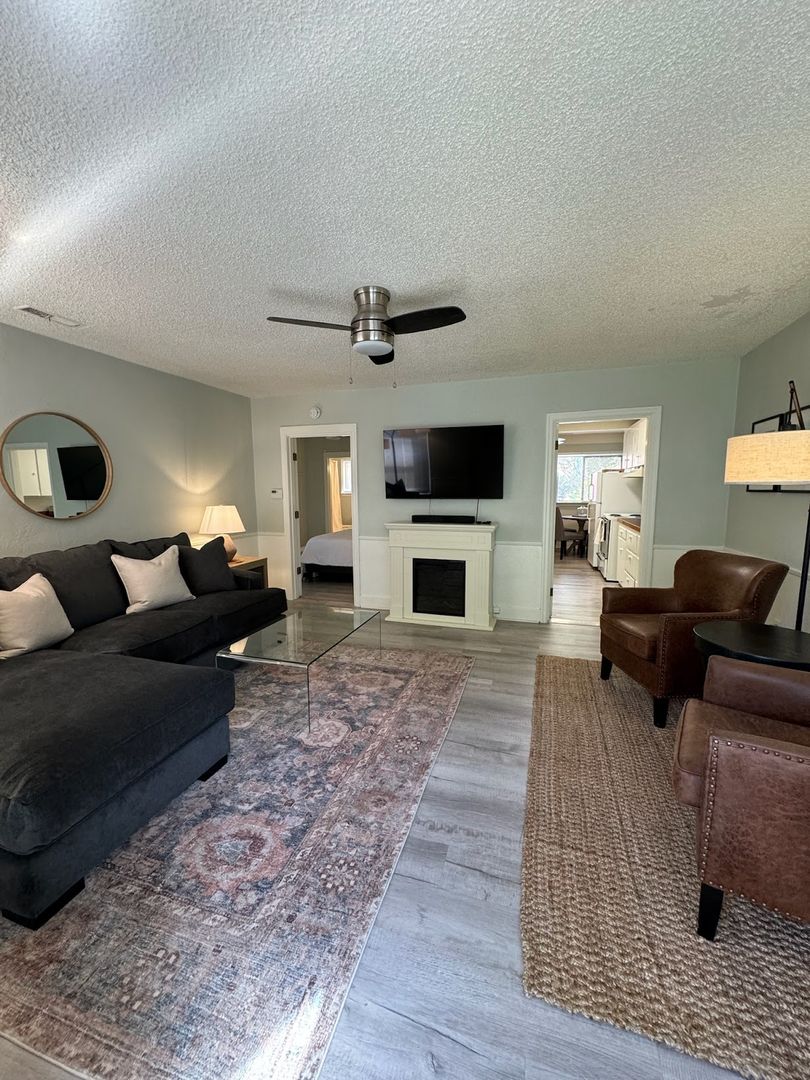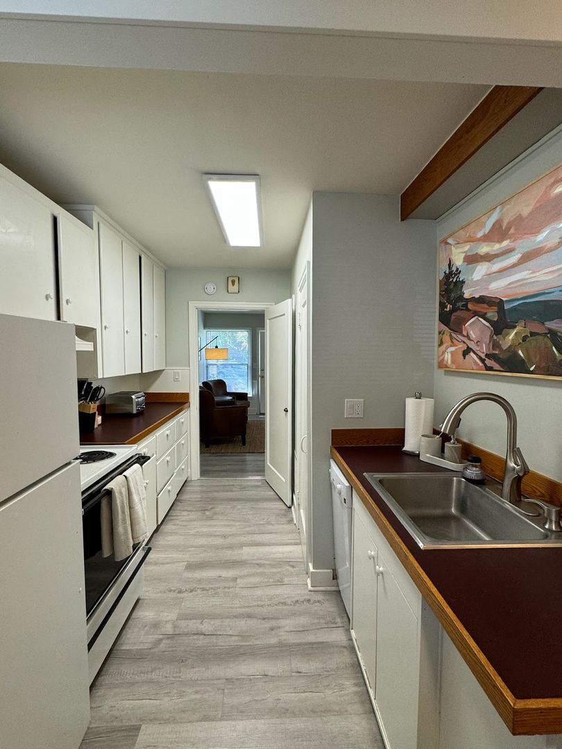 Situated just 800 feet from Downtown Bend and one block from Deschutes River access, this cottage is nestled in a picturesque neighborhood with an impressive walkability score of 98%. Step into the large living room, where you'll find a brand new 55” LG flat-screen TV with sound bar, a comfortable sectional couch perfect for lounging and an additional seating area for relaxing with a book or enjoying company.