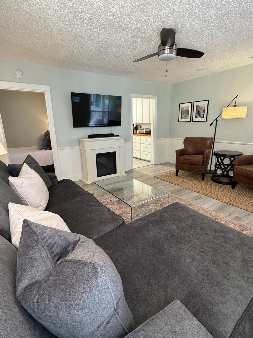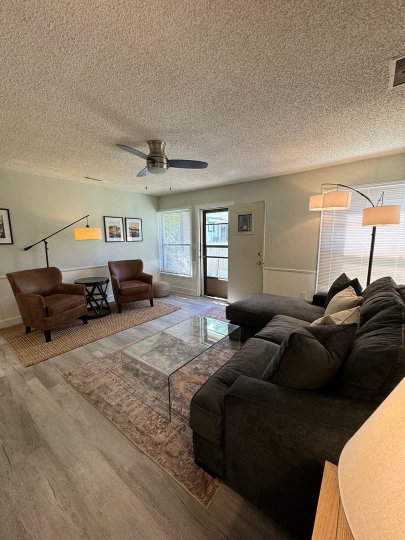 The fully equipped kitchen includes glassware, silverware, pots and pans, a Keurig coffee maker, toaster, blender and an array of kitchen accessories to meet all your culinary needs. Additional amenities includes WiFi internet service, washer and dryer, ceiling fans, an extra blow-up bed with bedding, beach towels and an off-street parking space conveniently located at the back door.