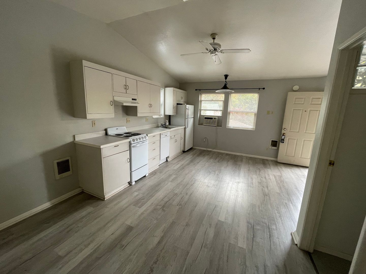 Cute 2nd story unfurnished studio for rent in Historic Old Bend near Drake Park and the Downtown Library. The unit has durable synthetic hardwood flooring throughout, full studio kitchen and lots of natural light throughout. There is a $50 monthly charge for water, sewer, trash and snow removal. The rent is $1325/mo and the security deposit is $1,325 and there is a 6 month minimum lease requirement. Coin operated laundry on-site. Pets are welcome with an additional $50 monthly rent and additional $500 pet deposit. Please contact her directly at to make arrangements to view the interior. Applications fees are $30 per adult and applications can be submitted through the property management website "Doyleire.com" click "For Rent". For further questions, please contact Patrick.